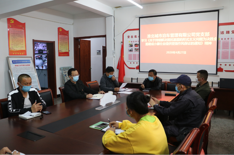 4月27日,城泊公司黨支部召開黨員大會,傳達學習中辦《關于持續解決困擾基層的形式主義問題為決勝全面建成小康社會提供堅強作風保證的通知》(以下簡稱《通知》)精神。