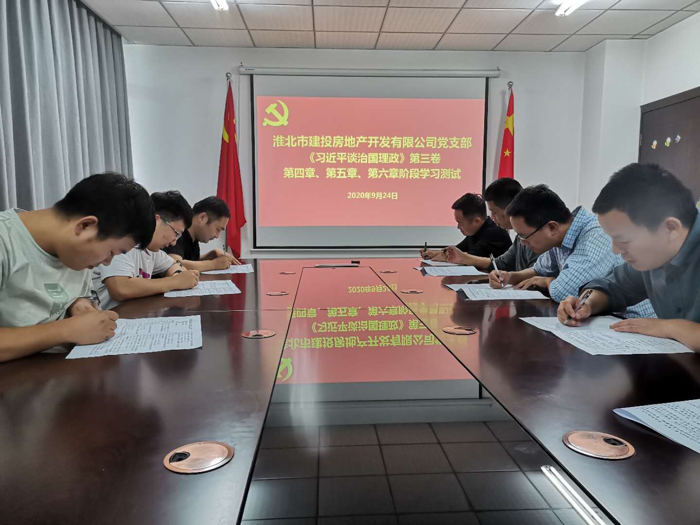 房地產黨支部9月24日組織全體黨員、入黨積極分子在會議室開展《習近平談治國理政》第三卷重要知識點測試。