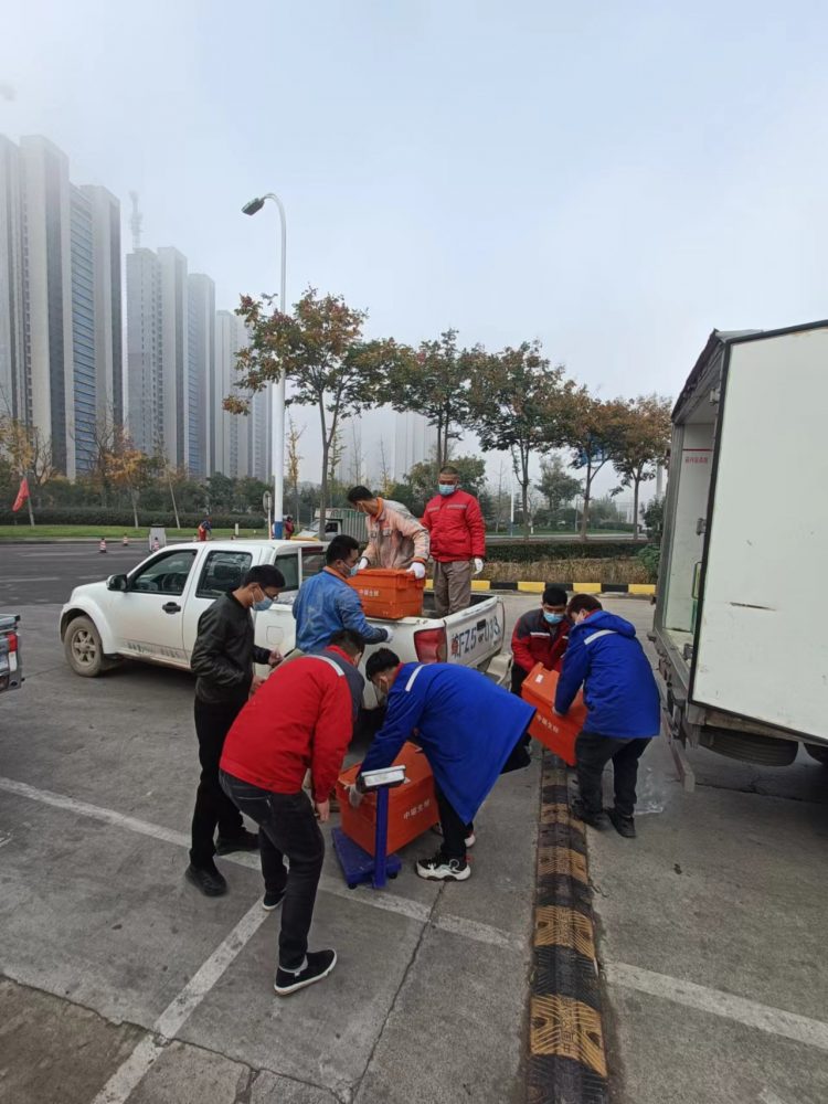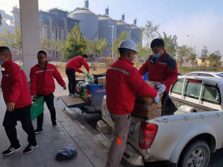 為保證通鳴礦業(yè)生產(chǎn)正常運行,確保員工的日常生活需求,疫情期間,在食堂供應商——濉溪縣中瑞生鮮配送公司無法將生活物資配送到指定地點的情況下,11月15日上午,通鳴支部迅速響應,統(tǒng)籌協(xié)調(diào),提前安排,以安全保供和疫情防控為抓手,以企業(yè)擔當精神為動力,積極組織綜合部、經(jīng)管部、生產(chǎn)部、工程部共計10名黨員及生產(chǎn)技術骨干迅速成立“黨員突擊隊”,同時調(diào)配兩輛皮卡車參與生活物資運輸。