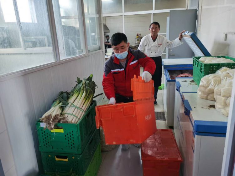來到疫情防控卡點后,“黨員突擊隊”成員在做好防護工作的同時,積極對接濉溪縣中瑞生鮮配送公司人員,仔細核對好物資數(shù)量及重量,在最短的時間內(nèi)將生活物資運送到通鳴公司食堂內(nèi),及時高效的完成了本次突擊任務,同時也確保了通鳴礦業(yè)的生產(chǎn)、生活正常運轉。
