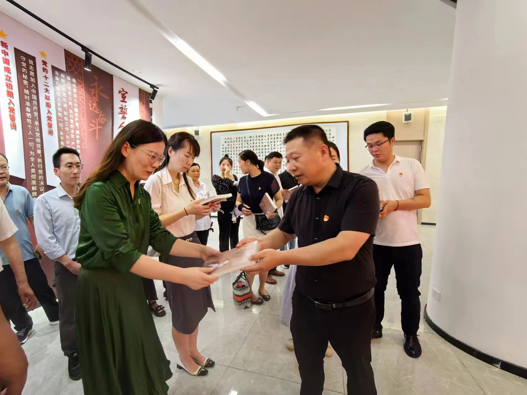 上圖為給黨員發(fā)放黨史書籍