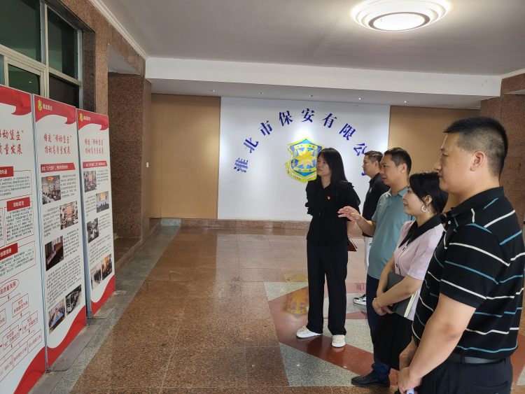 近日,小貸黨支部書記趙瑩瑩帶領支部黨員前往淮北市保安有限公司黨總支參觀交流黨建工作。
