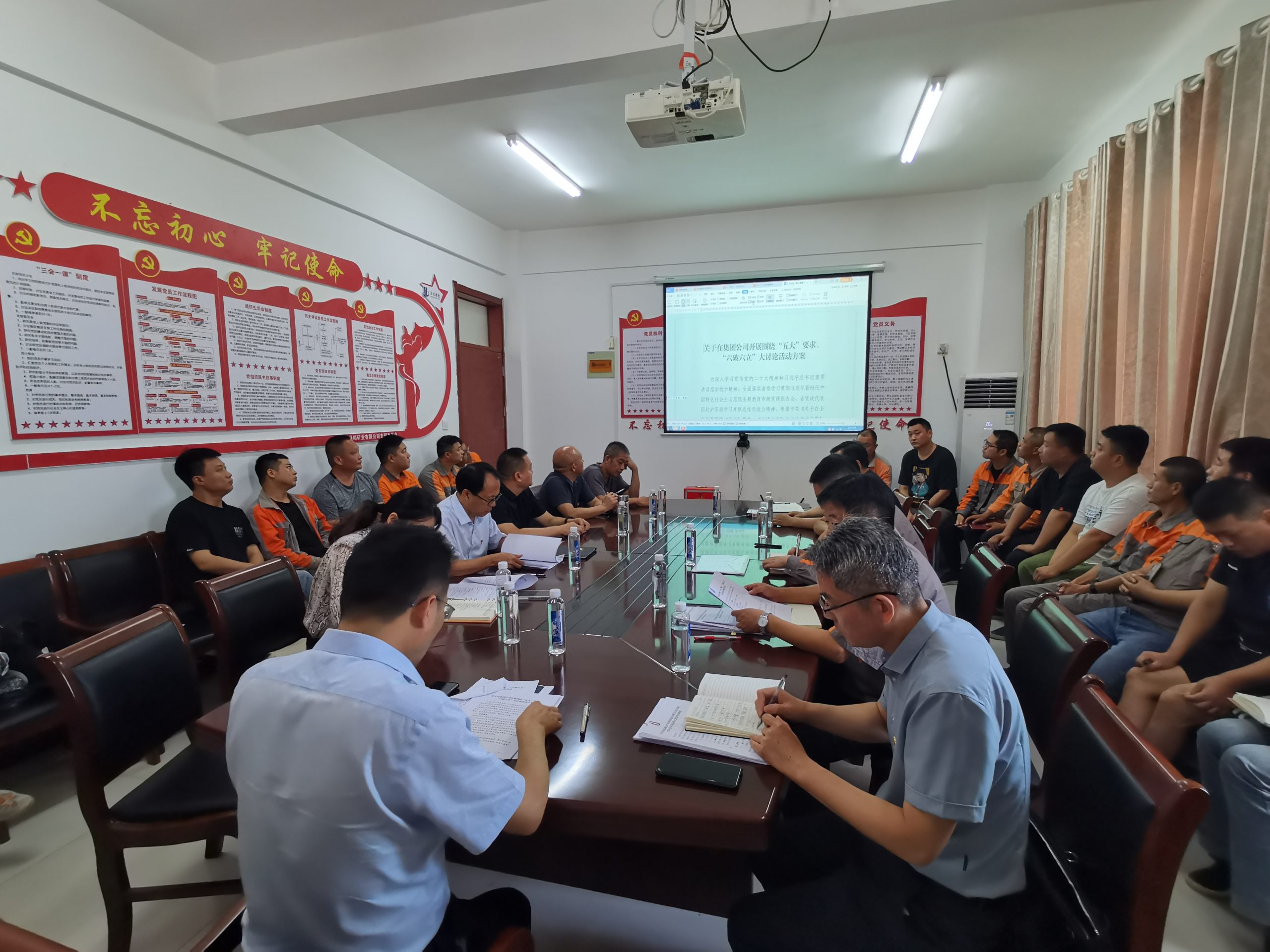 8月16日上午,通鳴礦業召開圍繞“五大”要求、“六破六立”大討論活動動員會。支部書記朱濤作動員講話,通鳴礦業黨支部全體黨員同志參加會議。