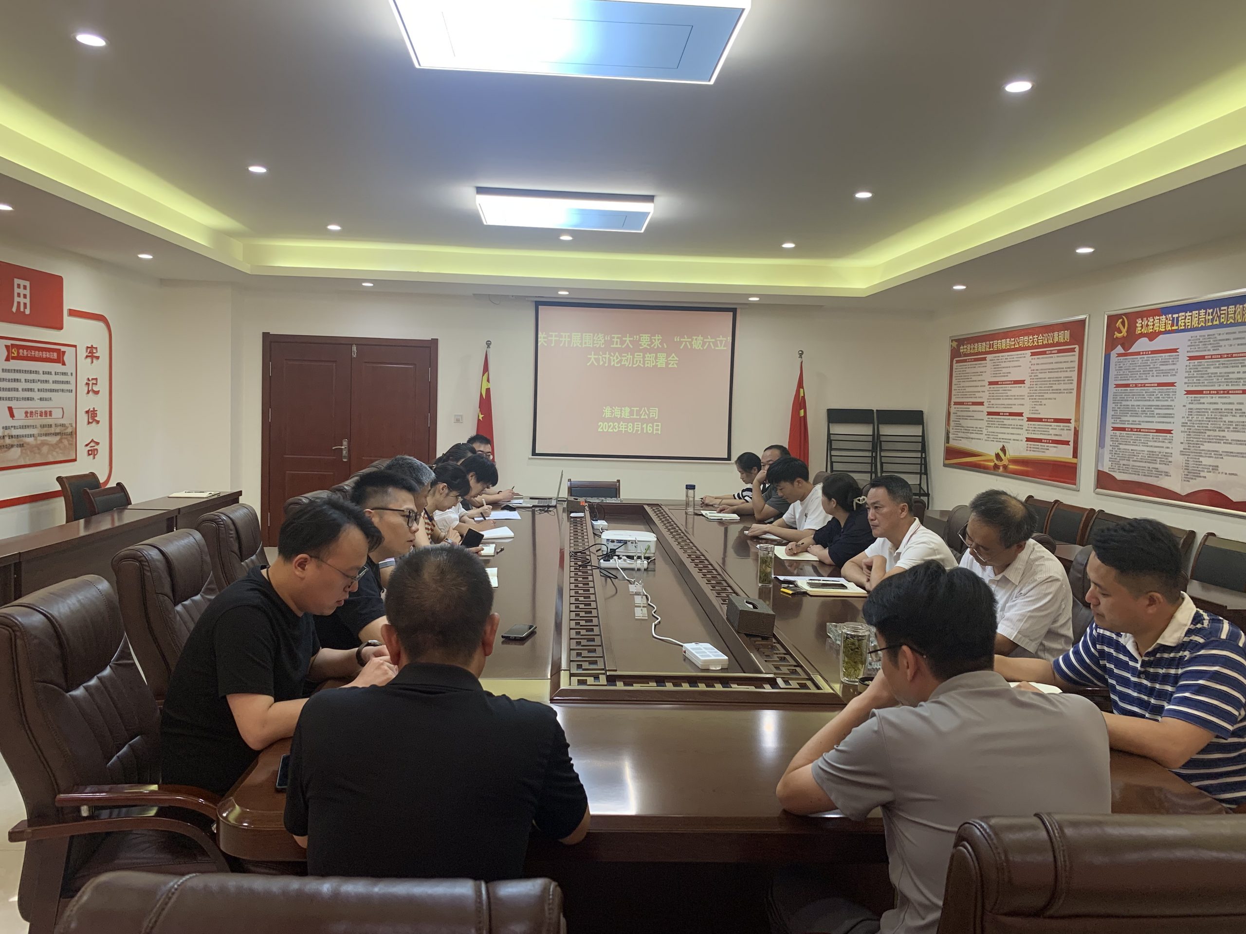 會上,傳達了《關于在淮海建工公司開展圍繞“五大”要求、“六破六立”大討論活動方案》,并對大討論活動進行安排部署。