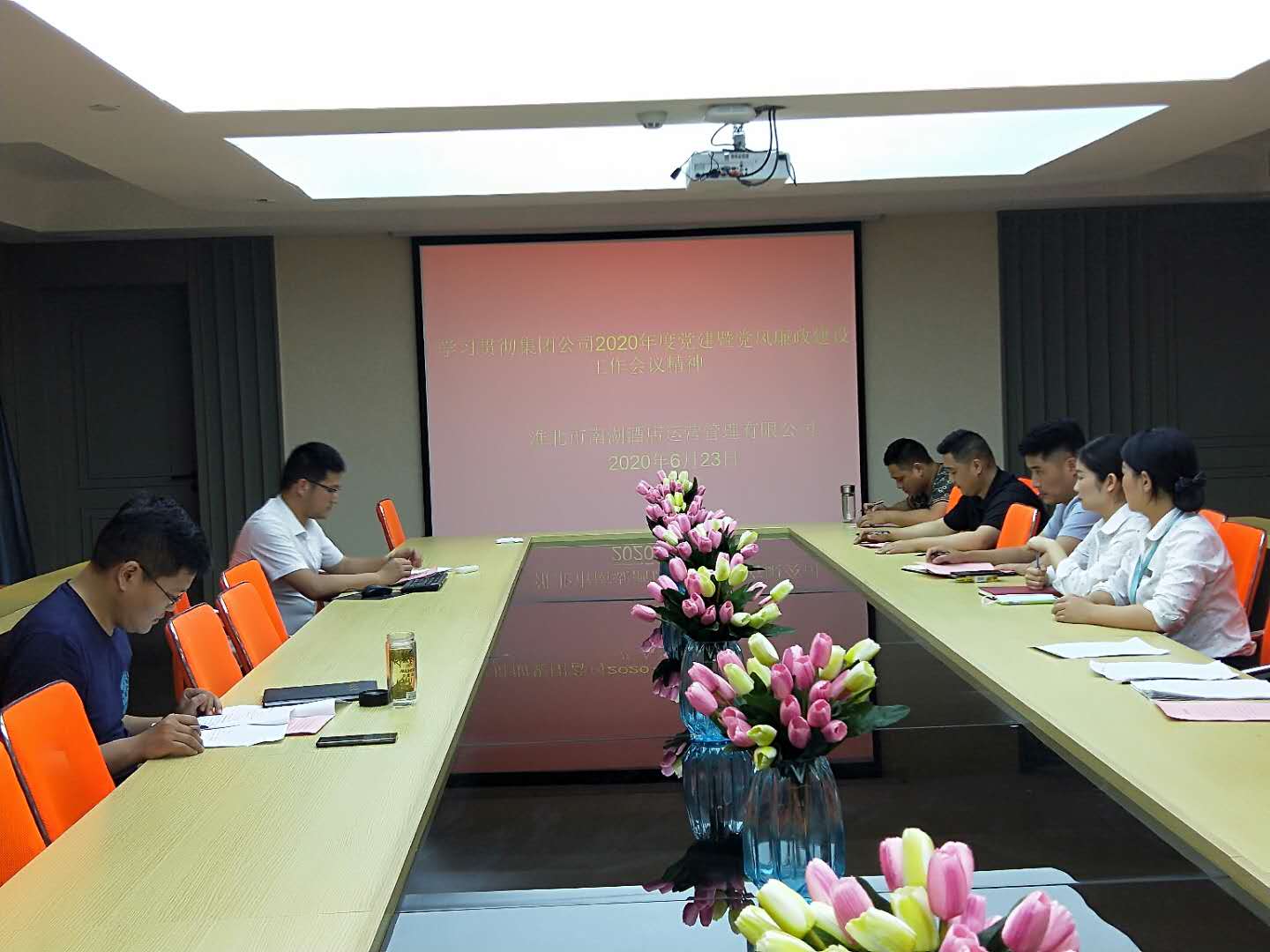 6月23日下午,南湖酒店黨支部組織全體黨員及部分員工在公司二樓會議室學習傳達集團公司2020年度黨建暨黨風廉政建設工作會議精神。