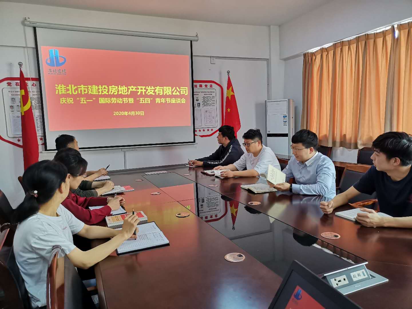 房地產公司召開慶?!拔逡弧眲趧庸潯濒摺拔逅摹鼻嗄旯澴剷?/h2> 4月30日,房地產公司在四樓會議室召開了慶祝“五一”勞動節暨“五四”青年節座談會。