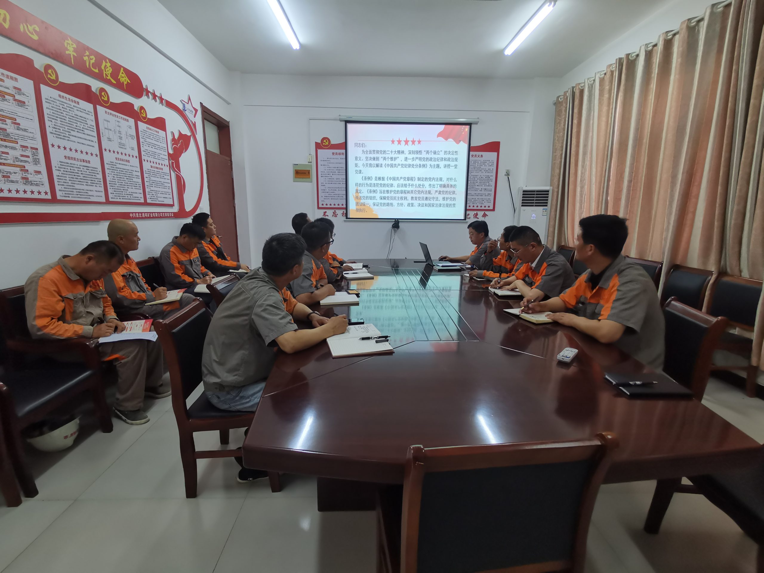 活動伊始,支部副書記劉鵬同志發表了熱情洋溢的致辭。他強調,作為共產黨員,必須時刻保持清醒的政治頭腦,堅定理想信念,嚴格遵守黨的紀律和規矩。隨后詳細解讀了《中國共產黨紀律處分條例》中的相關內容,通過具體的案例分析和政策解讀,使黨員干部們對黨紀規定有了更加深刻的認識。