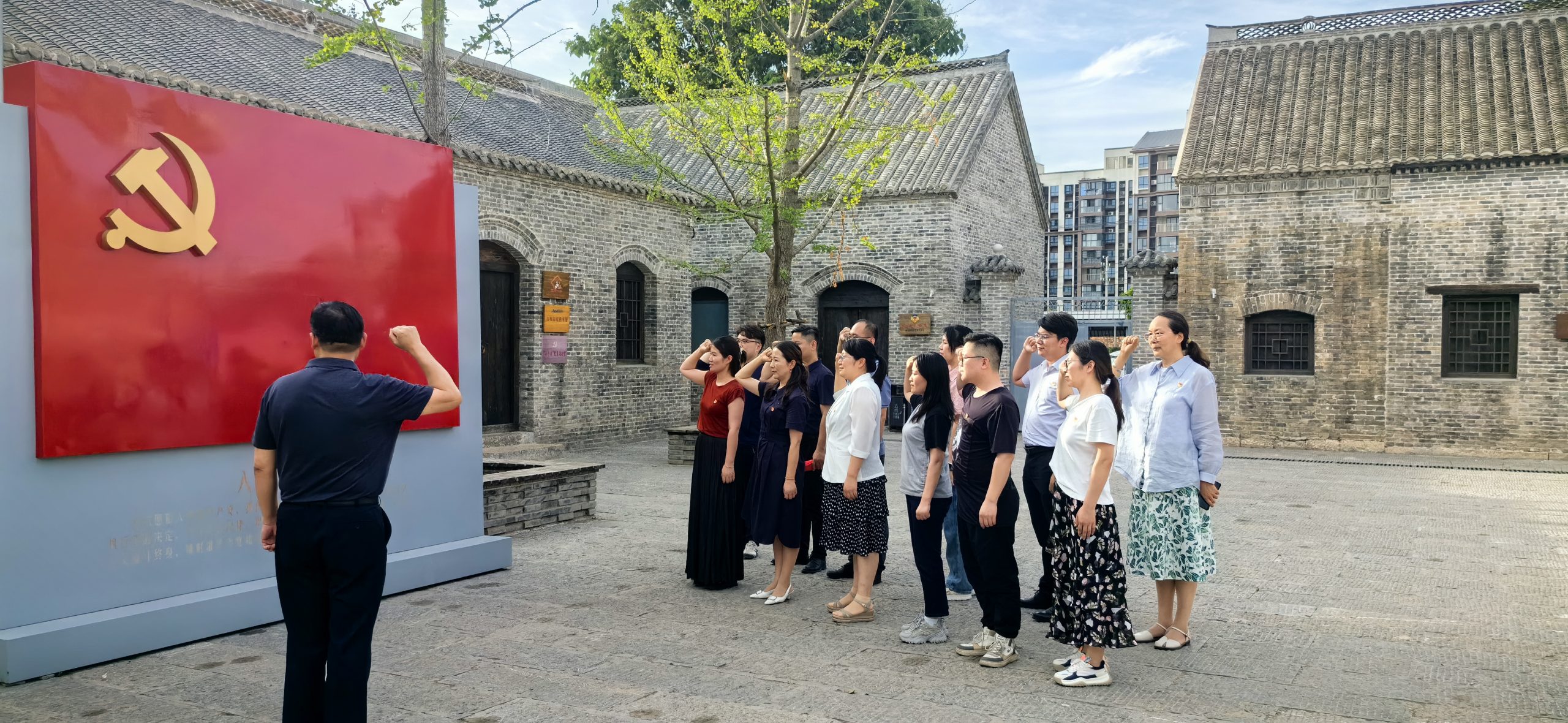 參觀之余,支部書(shū)記帶領(lǐng)全體人員重溫了入黨誓詞,面向黨旗、佩戴黨徽,拳拳誓言回蕩在小院上空。同志們紛紛表示,在這次活動(dòng)中,再次深深體會(huì)到黨的優(yōu)良傳統(tǒng)和堅(jiān)定的理想信念,要繼續(xù)弘揚(yáng)光榮傳統(tǒng),賡續(xù)紅色血脈,從紅色基因、革命傳統(tǒng)中汲取精神力量和經(jīng)驗(yàn)智慧,扎實(shí)做好各項(xiàng)上級(jí)安排的工作。