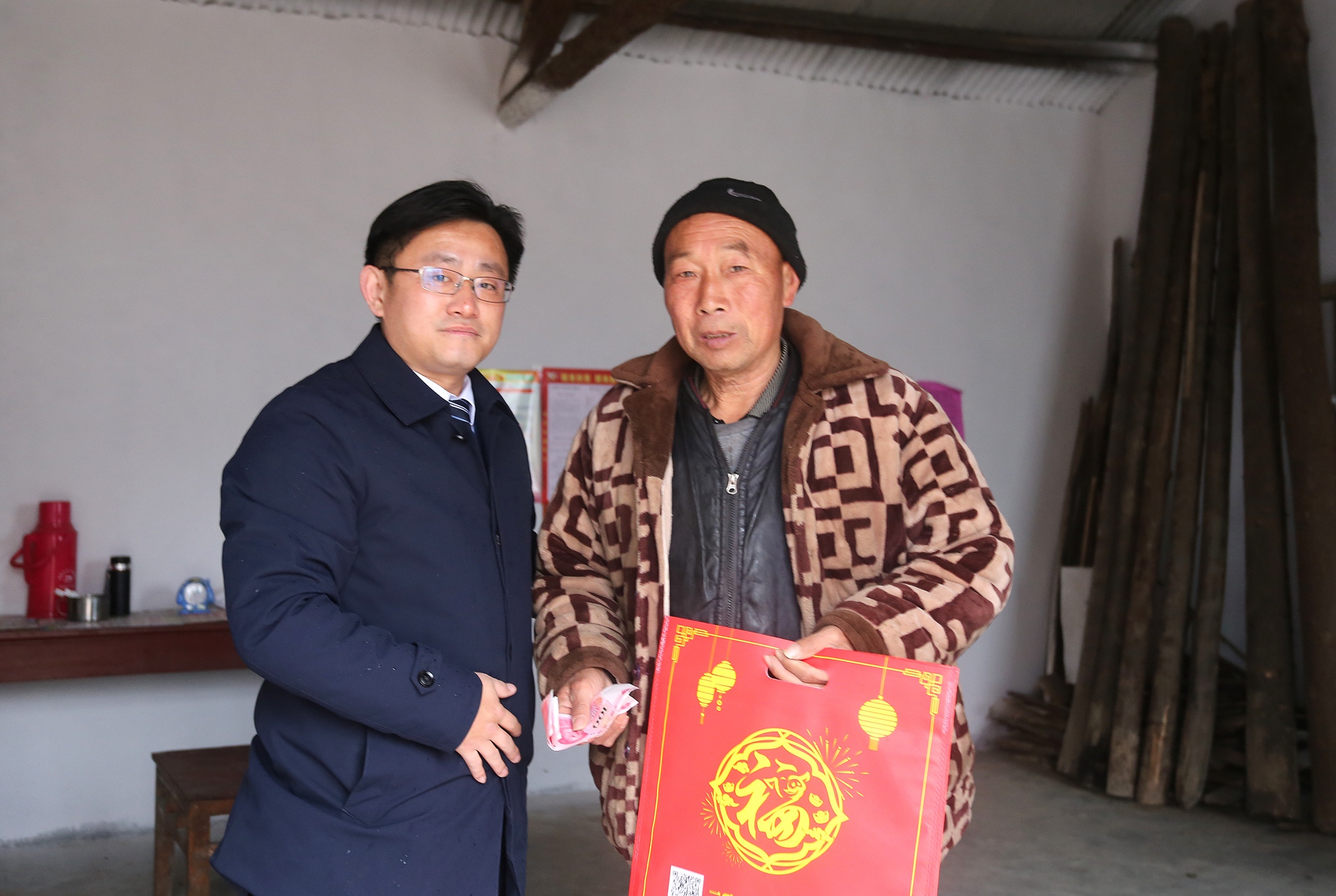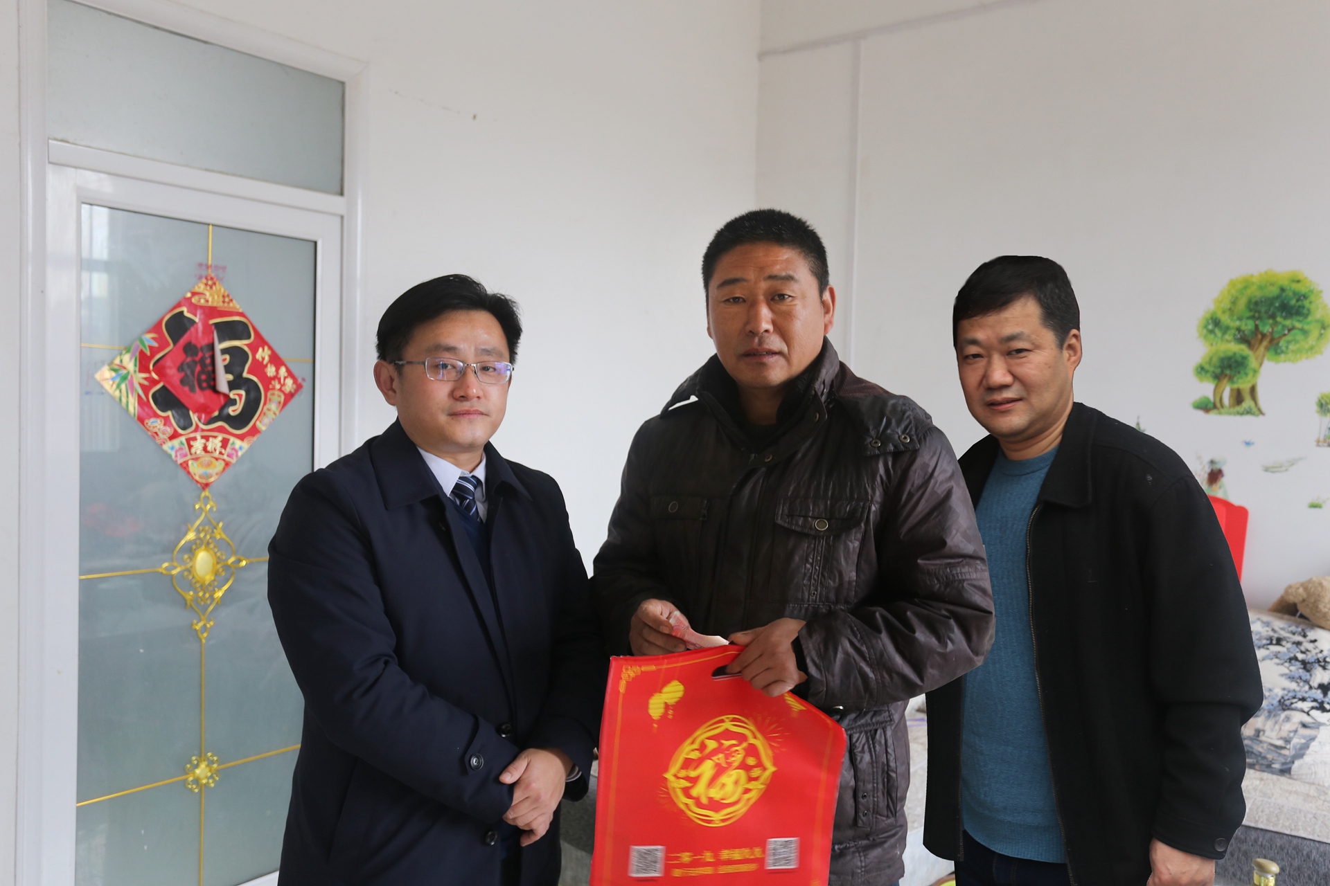 春節將至,年味漸濃。在新春佳節來臨之際,市建投集團黨委委員、副總經理王佩劍帶領扶貧5組成員前往火神廟村走訪看望貧困戶丁佩久和黃傳平家庭,并為幫扶貧困戶送去春節慰問金和春聯,提前送上新春佳節的問候與祝福。王佩劍每到一戶,都熱情的與他們拉家常,詳細詢問他們的身體情況、生產和生活現狀,認真傾聽他們的訴求,叮囑他們一定要保重身體,鼓勵他們健康生活、快樂勞動。