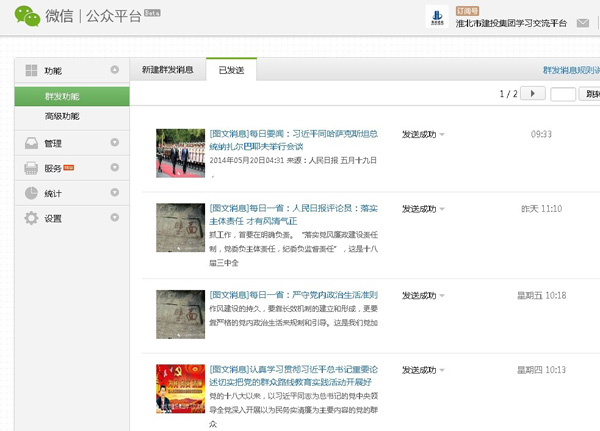 微信平臺共開設7個板塊:時政要聞、群教專題、黨風廉政、集團動態(tài)、每日一警、每日一省、每日一學,通過微信以圖文、音頻、視頻等形式,第一時間傳達上級精神要求,及時傾聽群眾呼聲,用更直接、更喜聞樂見的方式宣傳黨的群眾路線教育實踐活動,微信平臺的親和力和互動性,有效拉近了黨群干群關(guān)系,促進了干部群眾的工作熱情。