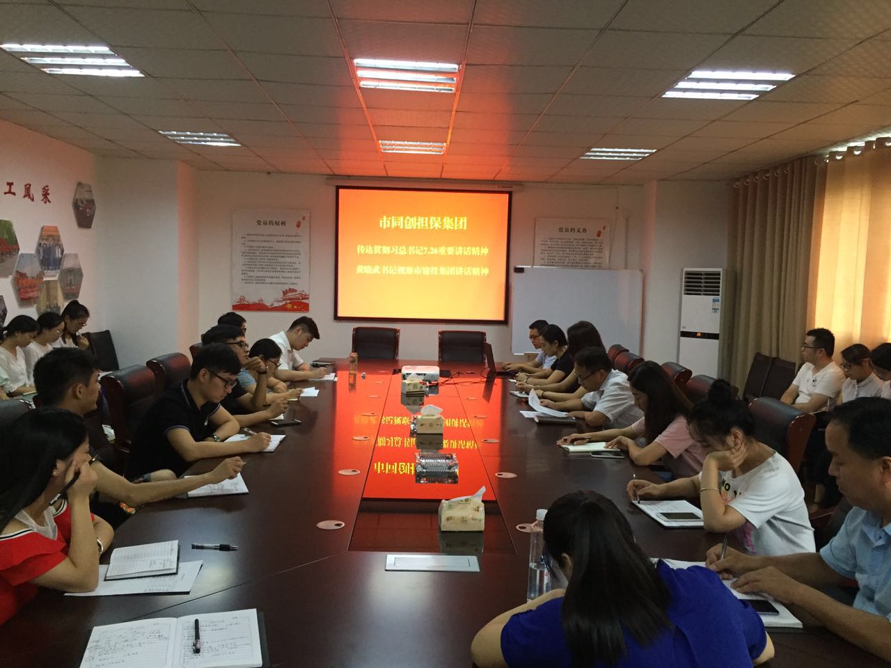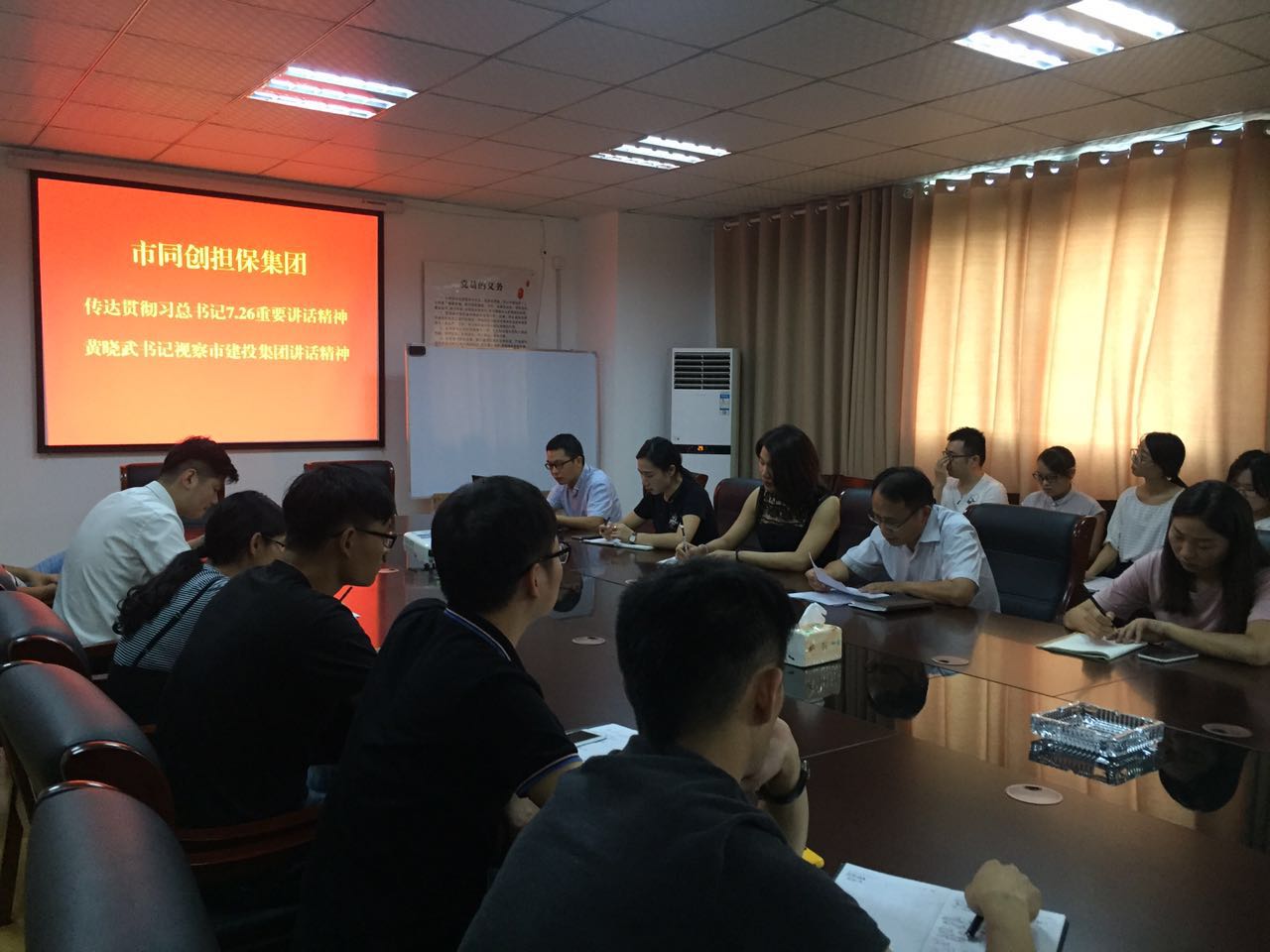 8月22日,市同創融資擔保集團組織全體員工學習貫徹習總書記7.26重要講話精神與市委書記黃曉武同志調研市建投集團講話精神。