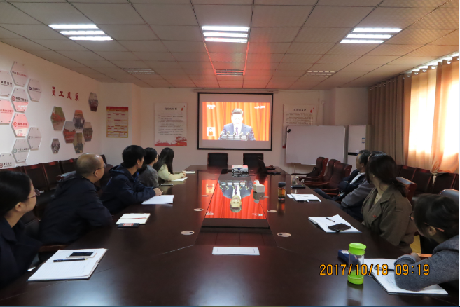 2017年10月18日上午9:00,中國共產黨第十九次全國代表大會在北京開幕。淮北市同創融資擔保集團有限公司黨支部全體黨員干部在會議室集中收看會議實況直播,認真聆聽、學習習近平總書記代表十八屆中央委員會向大會所作的報告。