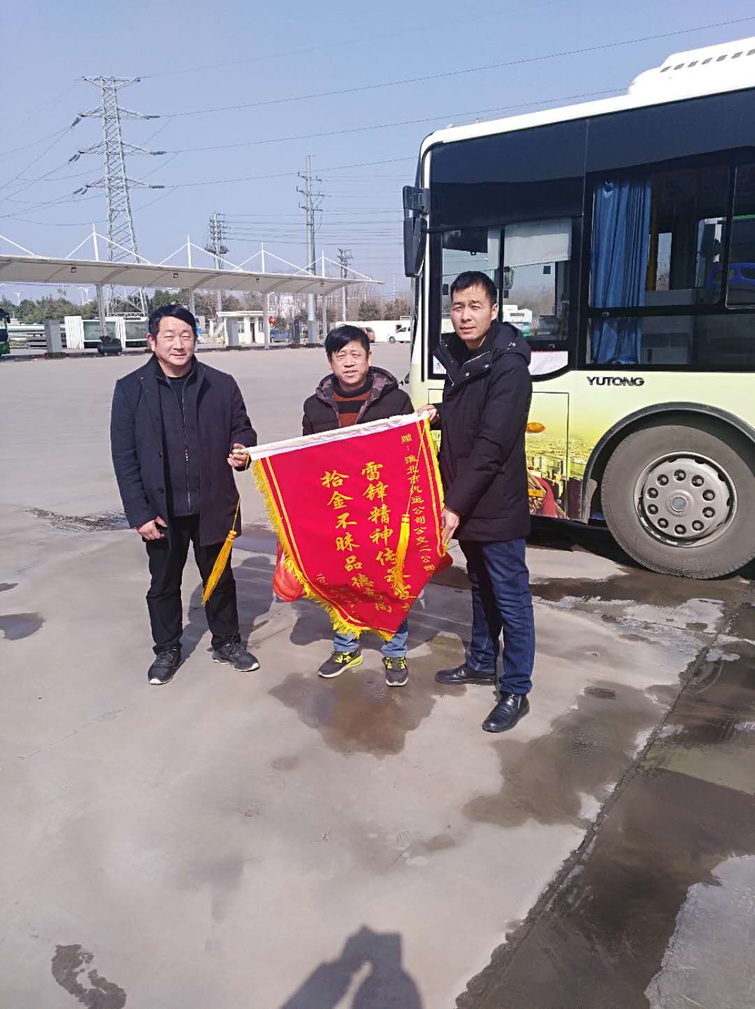 “真是太感謝了,要是沒(méi)有高瑞師傅,我的包可能就再也找不到了,包里還有四千多元的欠條也要不回來(lái)了”失主激動(dòng)地說(shuō)道。2月26日下午,失主將一面印有“雷鋒精神傳承發(fā)揚(yáng) 拾金不昧品德高尚”的錦旗送給了109路車(chē)司機(jī)高瑞。