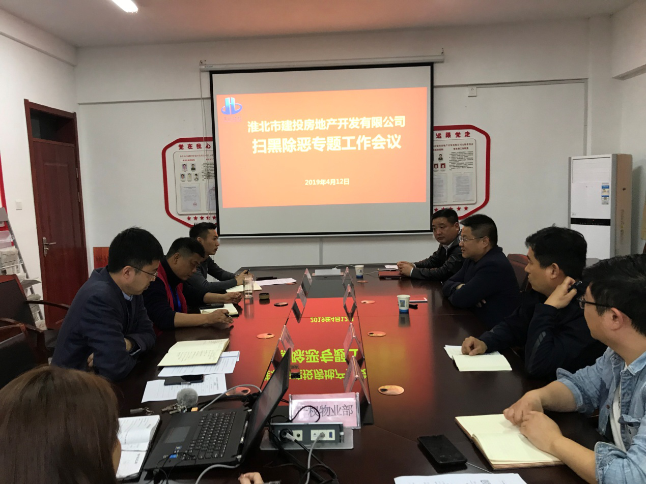 2019年4月12日,為響應(yīng)國家掃黑除惡專項斗爭,房地產(chǎn)公司召開了掃黑除惡專項工作會議,認真學(xué)習(xí)了《關(guān)于開展掃黑除惡專項斗爭的通知》、《掃黑除惡專項斗爭應(yīng)知應(yīng)會內(nèi)容》,對掃黑除惡專項斗爭工作進行了集中學(xué)習(xí)宣貫。