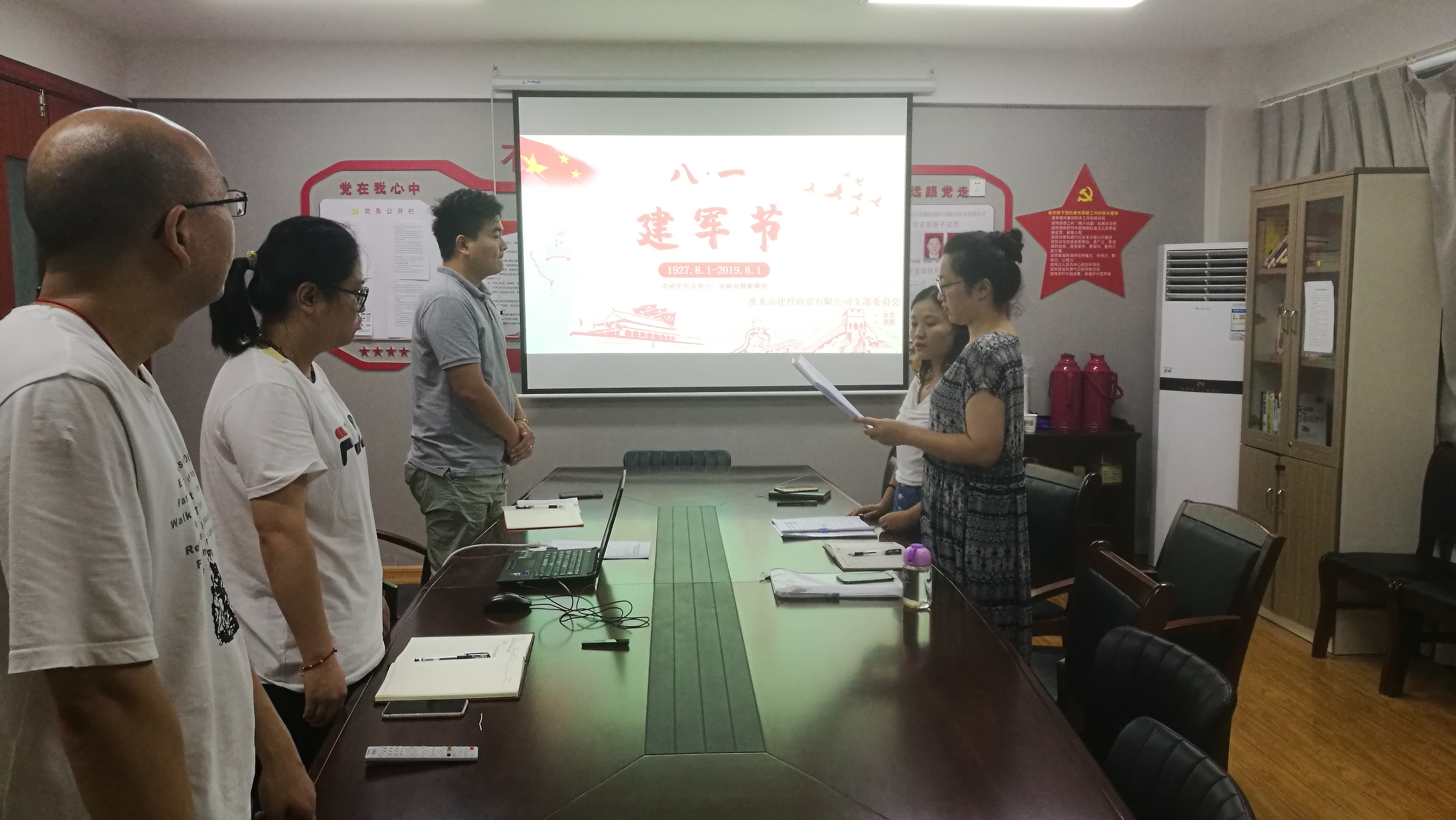 8月1日下午,建投商貿黨支部開展慶“八·一”建軍節主題黨日活動,支部副書記金曉莉主持活動。